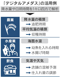 気象衛星の観測データなどを活用したスマートフォンアプリ「デジタルアメダス」について、気象庁は利用エリアを全国に拡大しました。1キロ四方まで割り出した気象情報を提供します。気候変動がビジネスに与える影響は年々高まっています。今後はいっそう農林水産業をはじめ幅広い分野での利活用が見込まれ、気象庁などが提供するデータの解説や加工を担える人材、データをもとに需要予測などを行える人工知能(AI)を使ったシステムの開発が求められます。