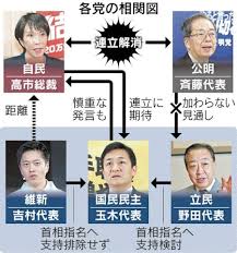 2025/10/12 多党制時代へ 本格的な多党制時代を迎え、政治が混迷を深めています。公明党は高市早苗自民党総裁との少数与党ではなく、政策ごとに協力する道を選択しました。この結果、日本の政治の次のシナリオには野党連合への政権交代も加わることになりました。ただ、いずれの道も茨の道で不安定で政治が漂流(浮き草)するリスクを孕んでいます。 tagPlaceholderカテゴリ: ブログ, 2025年10月